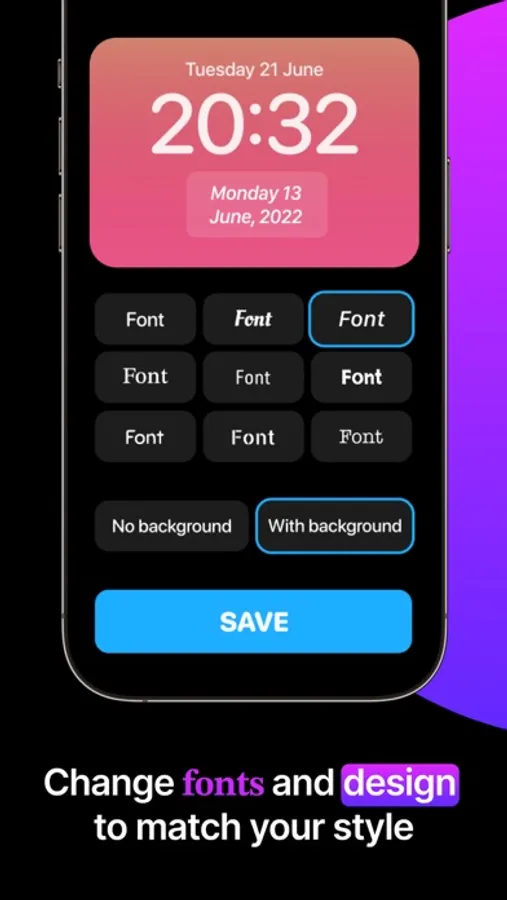 Create custom widgets for your Lock Screen! Choose from over 100+ widgets with new ones added regularly. Edit fonts and background designs to help match your Lock Screen style.
