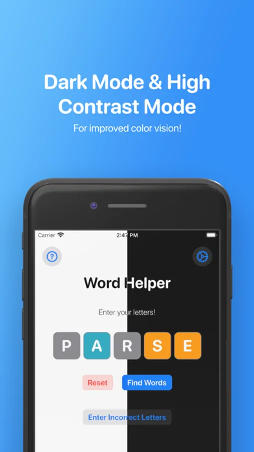 Simply enter the last guess that you made, tap on each letter to match it to your current game, and tap "Find Words" to search for words that match your game.