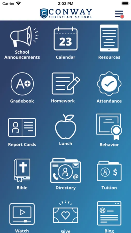Welcome to the Family App for families of Conway Christian School in Conway, SC! This app is a one-stop-shop for our school community, with anytime, anywhere access to all the tools, content, and communications parents need to stay connected and engaged. School information available in one easy to access place includes Announcements, School Calendar, Student Grades and Homework, Family Accounting, Giving Options, and much more!