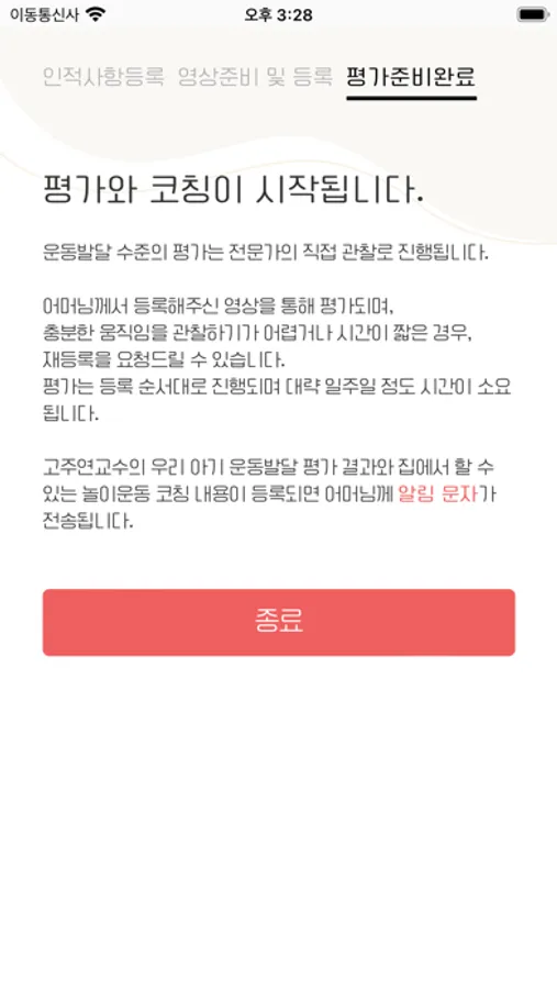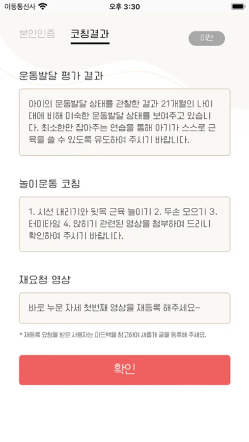 출생에서 걷기까지 아기의 운동발달을 양적 및 질적으로 평가하고, 집에서 할 수 있는 놀이운동을 코칭 해주는 일대일 온라인 공간입니다.