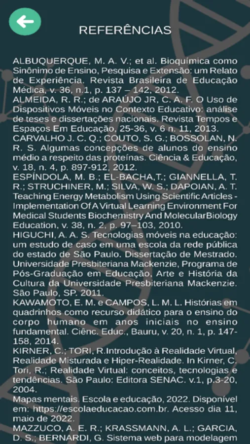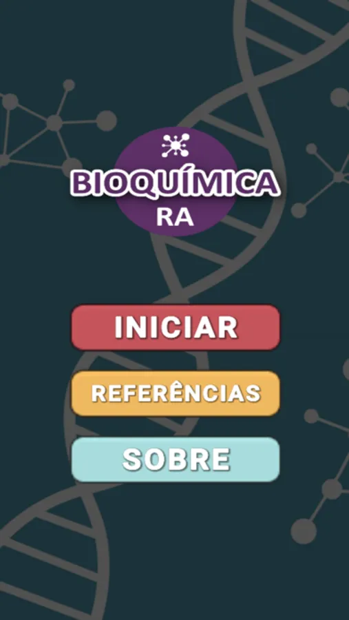 Seja Bem-vindo(a) ao aplicativo Bioquímica RA! Aqui você pode conhecer de perto as principais moléculas da Biologia em Realidade Aumentada! Utilize a câmera do seu dispositivo para visualizar em 3D as moléculas e aprender mais as suas estruturas e particularidades!