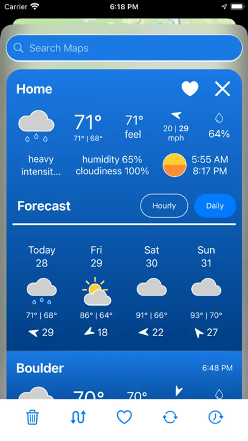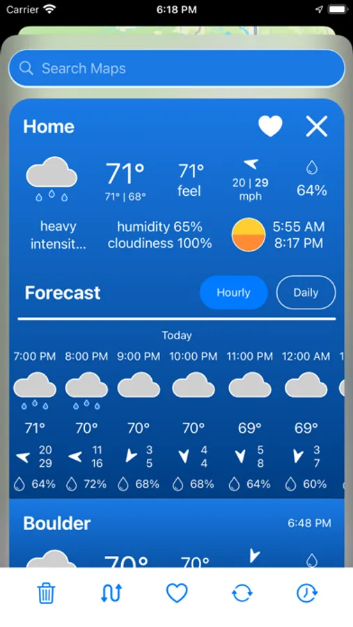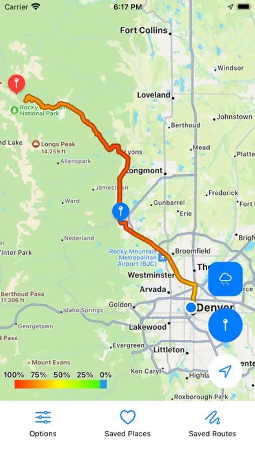 Tap in the middle of a route to see that waypoint's weather conditions.