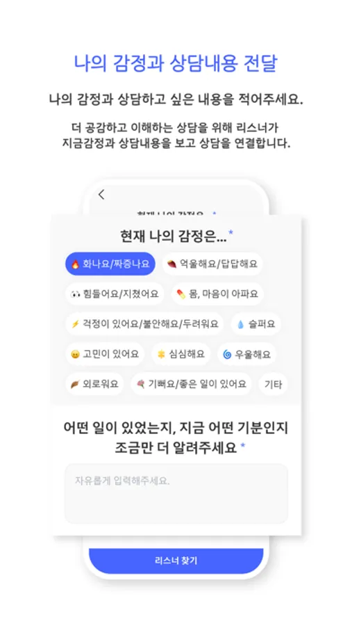 일상에서 일어나는 모든 심리, 감정적인 문제들을 리스너(상담사)와의 통화로 바로바로 푸세요.