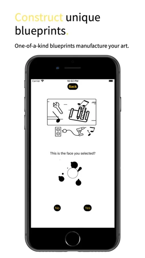Construct "one-of-a-kind" blueprints on the notebench, which are used to build and sell pieces on the market. Pieces are digital art that consists of a sound (.mp3) and face image (.gif). With the success of sales from your blueprint, you can also invest in its value and later auction it when ready. As you configure your blueprint from your inventory, pieces constructed from previous configurations will increase in rarity which will allow you to auction these items as well at a price at your discretion.