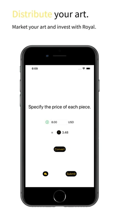 An application that lets you construct, configure, and distribute unique digital art with value potential with the use of Royal. Royal is a stable digital currency used to attach value to creations, specifically made to only be used to retain ownership of your creations. With Royal, you can invest in your digital collection as the value is positively correlated with market growth.