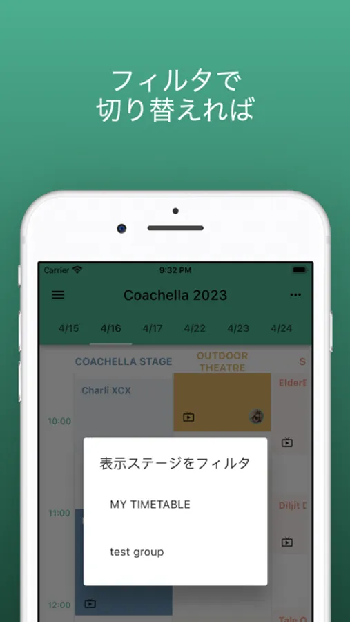 ●全ステージの表示と自分タイムテーブルやグループのタイムテーブルの表示もボタンひとつで簡単に切り替えられます。