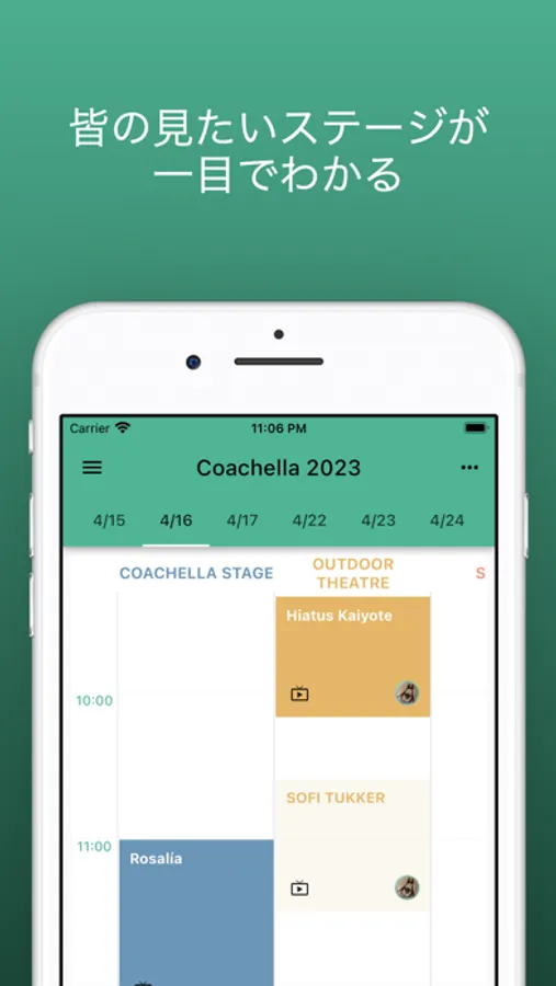 ●自分が見たいステージをタップすると、グループメンバーのタイムテーブルにも反映されます。