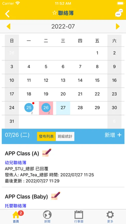 2. 班級通知單:接收班級教師或學校發送的訊息。