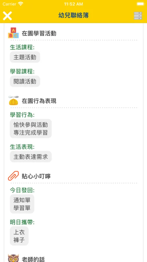 3. 聯絡簿:班級教師編輯課堂內容和作業給家長,家長可回覆與老師溝通交流。