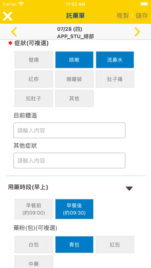8. 托藥單 : 家長填寫委託老師協助餵藥,可簽名和回覆餵藥情況。