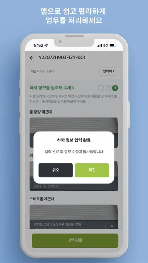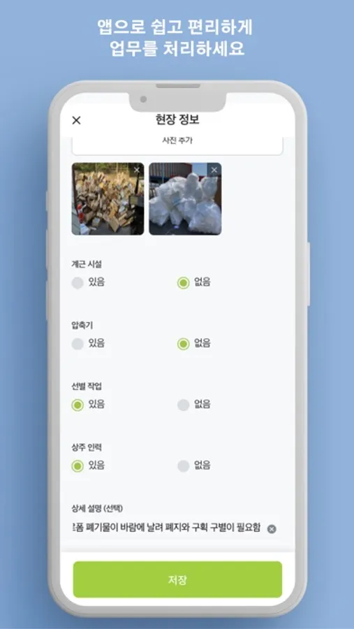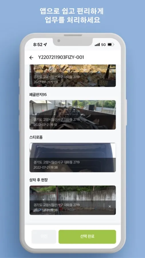 ● 폐기물 수거 현황과 이력을 확인할 수 있습니다.