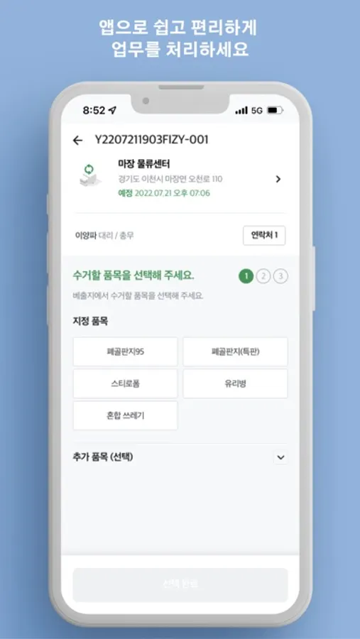 ● ECOYA 엔터프라이즈 앱에서 폐기물 수거를 요청할 수 있습니다.