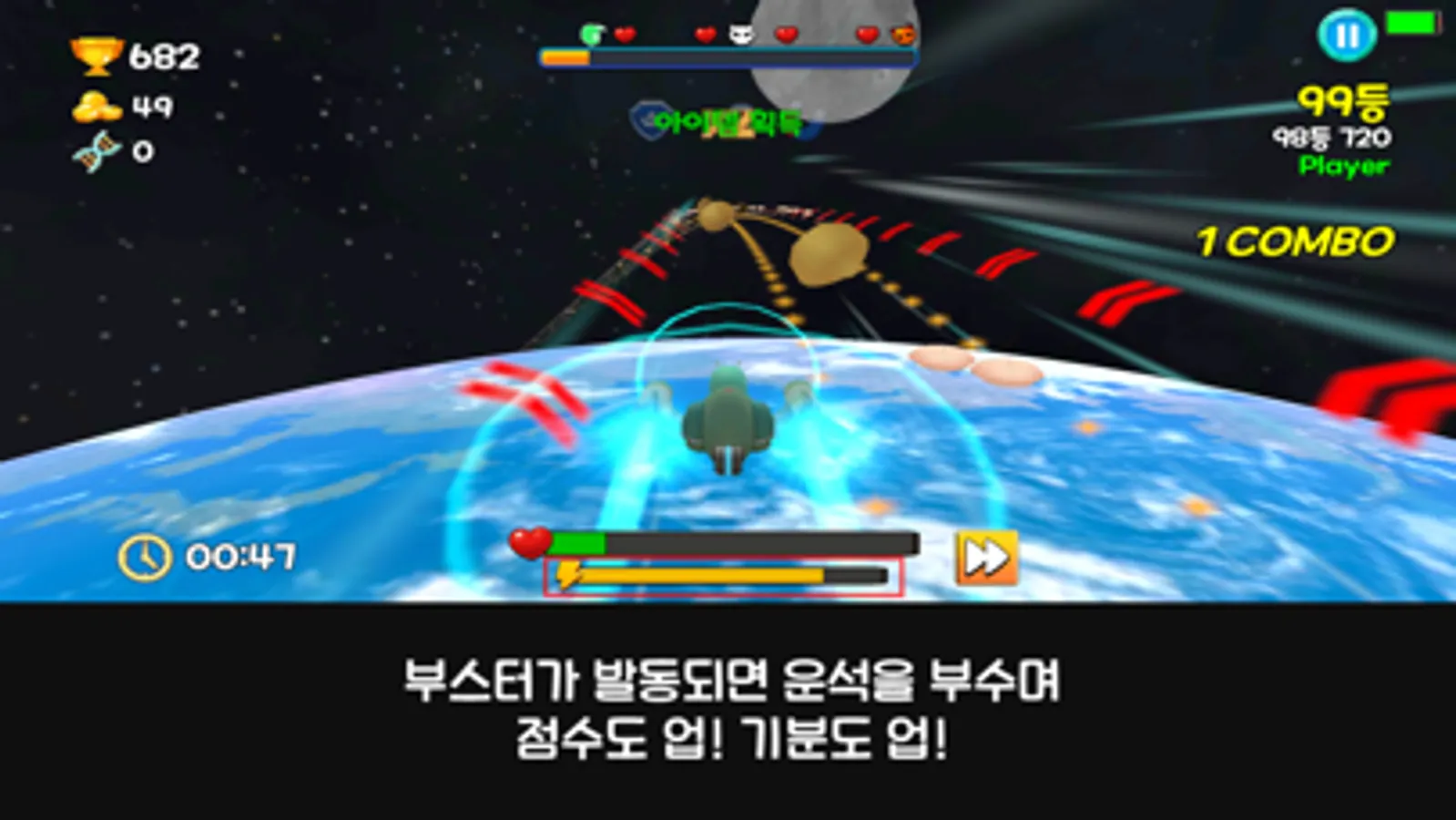 2. 부스터가 발동되면 운석을 부수며 점수도 업 기분도 업!
