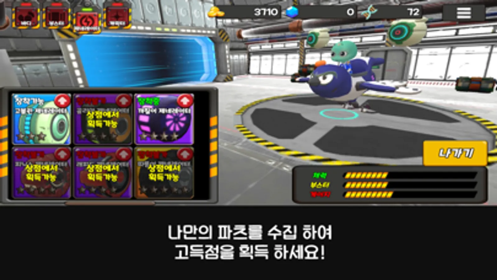 3. 각 파츠를 수집하여 나만의 파츠를 장착해 고득점을 획득하세요!