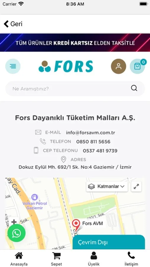 Fors AVM A.Ş., Türkiye’nin dayanıklı tüketim malları grubunda, elden satış sektörünün öncü firmaları arasında yer almaktadır. Firmamız faaliyetine ilk olarak, 1998 yılında başlamış olup, 2021 yılı itibariyle 13 adet çok katlı mağaza ve 200’den fazla çalışanı ile Marmara ve Ege Bölgesi’nde hizmet vermeye devam etmektedir. Fors AVM A.Ş. ticari hayatına küçük bir dükkanla başlamış olup, günümüzde ise her evin ve bireyin ihtiyacını karşılayabilecek, kaliteli ve güvenilir 60.000 ürün çeşidiyle garantili olarak, uygun fiyat ve kredi kartsız elden taksitli seçenekleriyle müşterilerine en iyi hizmeti vermektedir. Firmamız peşin, kredi kartı ve kredi kartsız elden taksit seçenekleriyle müşterilerine alternatif ödeme seçenekleri sunmakta ve bu kapsamda kuruluşundan bu yana müşterilerinin yaşam standardının, memnuniyetinin ve mutluluğunu arttırmayı amaçlamaktadır.