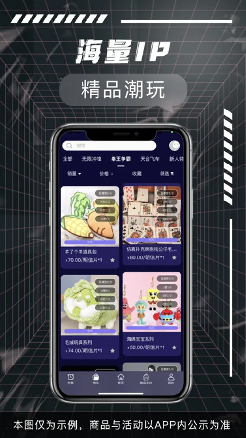 上千款热门盲盒,高达,海贼王,奥特曼,火影忍者,鬼灭之刃,七龙珠,假面骑士,复仇者联盟,漫威,海量热门IP产品,应有尽有。