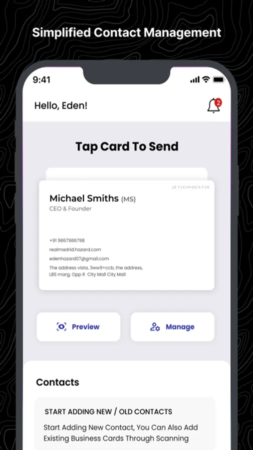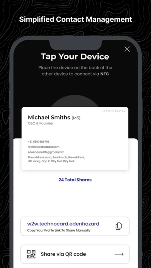 TechnoCards is a digital business card sharing platform allowing users to network seamlessly. It also offers features like Contact Management, Physical Business Card Scanning, Professional Business Profiles and Many more.