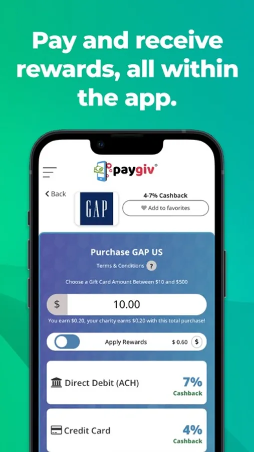 PayGiv® is a mobile shopping and fundraising app that enables corporate entities, nonprofits, schools and religious organizations to support fundraising initiatives through everyday shopping. Consumers can easily purchase nationally branded digital gift cards that offer immediate cash back rewards that are delivered directly into your digital wallet.