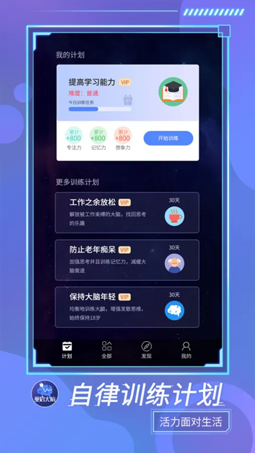 【重启大脑】是当前碎片化时代下,为了让大脑保持活跃、提高思维能力而打造的一款训练APP。内含多款脑力训练项目,全面提升大脑的记忆力、专注力、反应力、逻辑力、想象力!针对不同人群不同训练目的,比如提高学习能力、防止老年痴呆等都设定了专属的每日训练计划。
