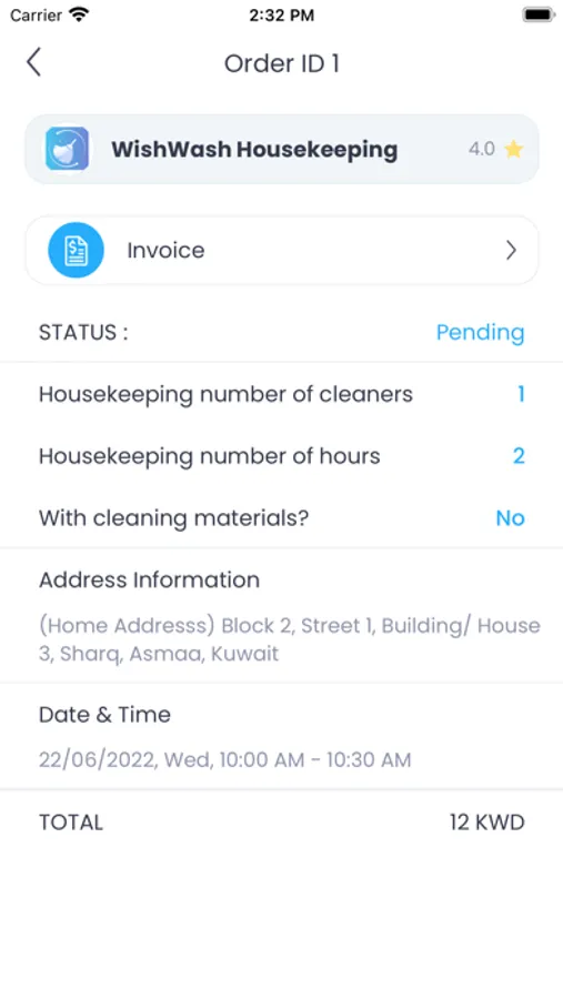 Home Cleaning functionalities: