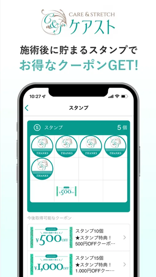 アプリを通して、ケアストの新着情報やお得な情報を受け取ることができます。また、いつでもお手元のスマートフォンから、メニューやご希望のお時間帯のチェック・ご予約などが可能です。アプリをインストールしていただくことによりケアストを、より便利に身近にご利用していただけます。