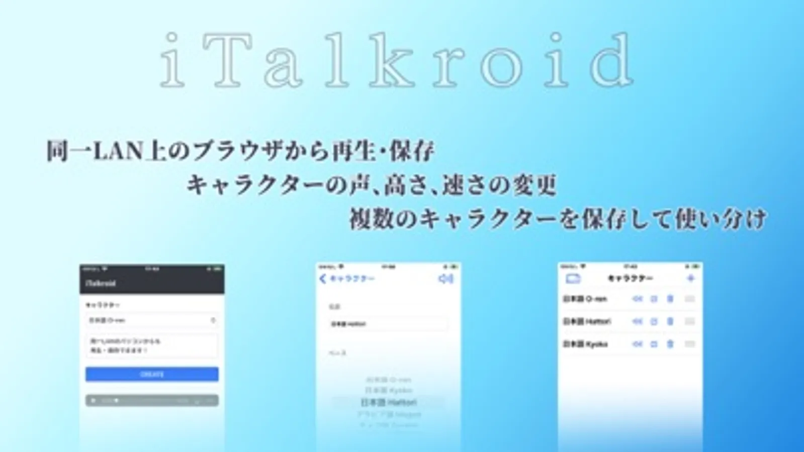 iTalkroidはテキストの読み上げ、音声ファイル保存ができるアプリです。