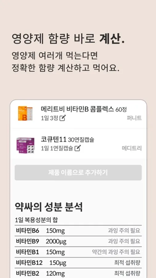 영양제를 여러 개 드실 때 중복된 성분 때문에 고민이신가요?