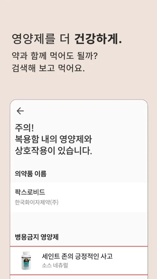 - 영양제 - 의약품 상호작용 검색