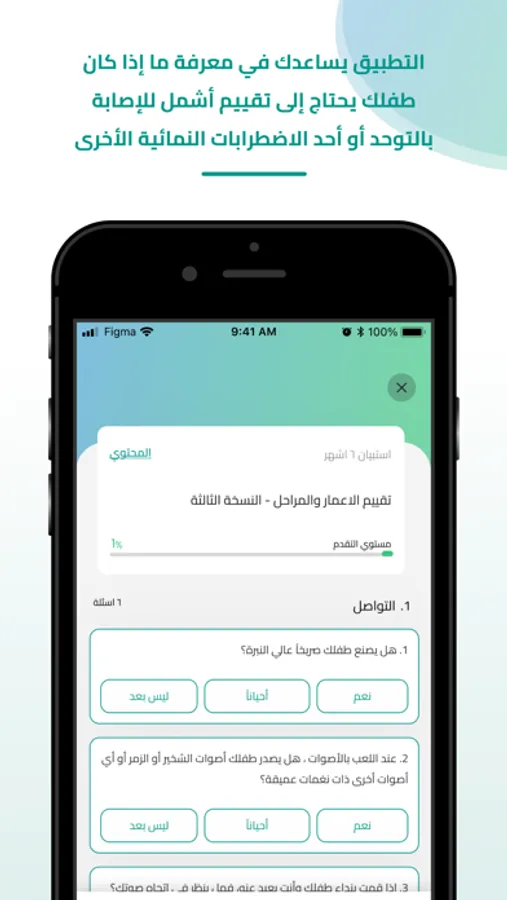 تطبيق كاشف يساعدك في معرفة ما إذا كان طفلك يحتاج إلى تقييم أشمل للإصابة بالتوحد. ويزودك بمجموعة من المواضيع الإثرائية والتوعوية حول التوحد.