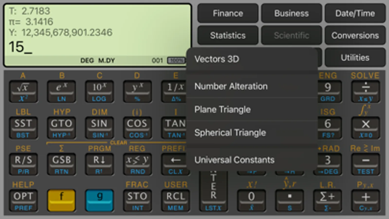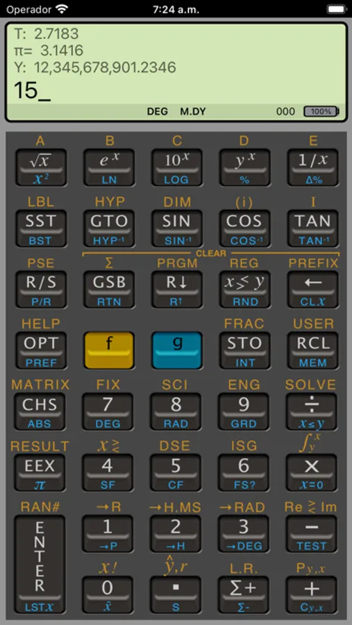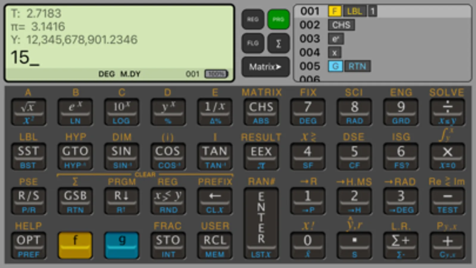 The RLM-15CX application is a programable advanced scientific calculator. It is based in the Hewlett-Packard HP-15C calculator, but specially designed to bring up the most of your iOS devices and , at the same time, conserving the easy of use and the functionality originally provided by the real calculator.