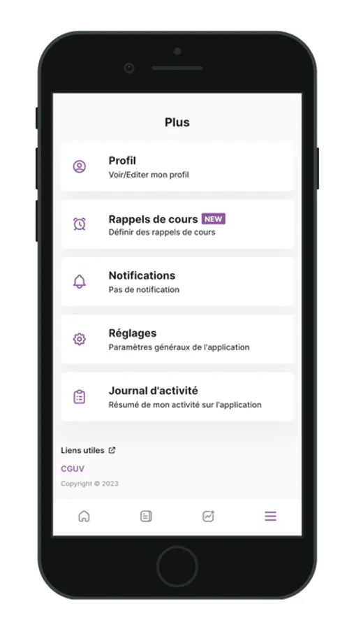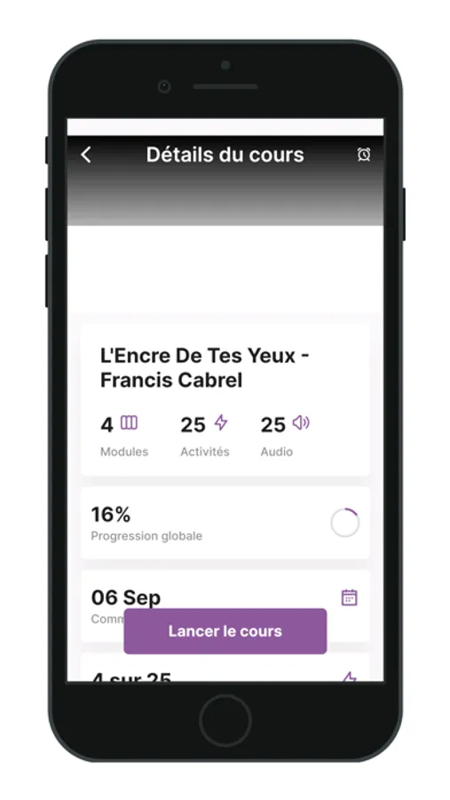 Dans l’application, tu retrouveras l’ensemble des cours :