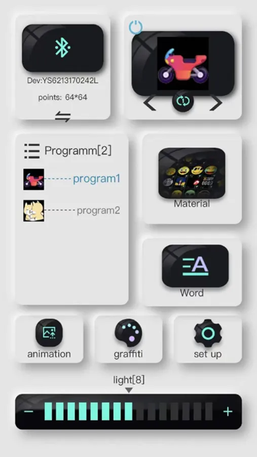 LOY space is a creative cool play app product that controls WiFi and Bluetooth device screens. Through the app, you can create colorful text, beautiful pictures, cool play animation, fun graffiti and other content. At the same time, it has rich materials, is compatible with multi specification device screens, and provides 13 language versions, making your experience more convenient and the product more personalized.
