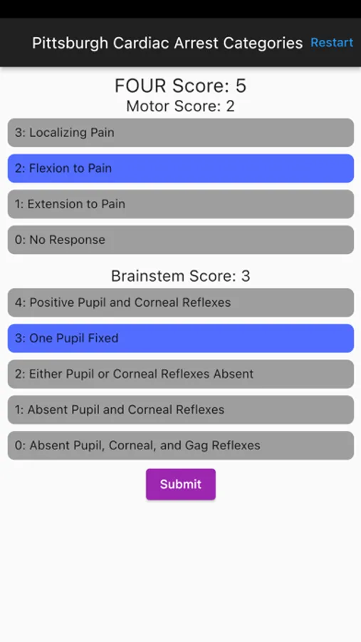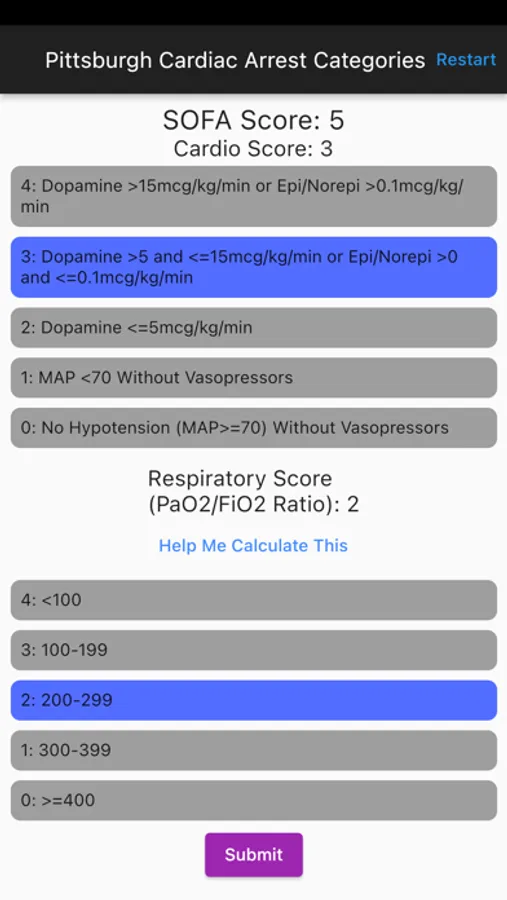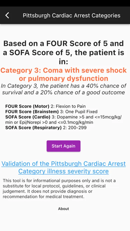 Tool to calculate the Pittsburgh Cardiac Arrest Categories Illness Severity Score, which helps categorize post-cardiac arrest patients in terms of illness severity. This tool provides the questions necessary to calculate the score.