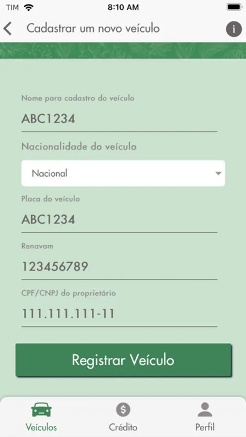 Os cadastros de novos veículos são auditados e somente estarão habilitados para consulta e aquisição de créditos após análise positiva.