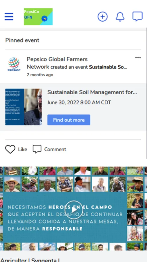 PepsiCo Global Farmers Network is a collaboration communication platform where farmers and the PepsiCo Team can share best practices, events, information and knowledge on sustainable farming practices.