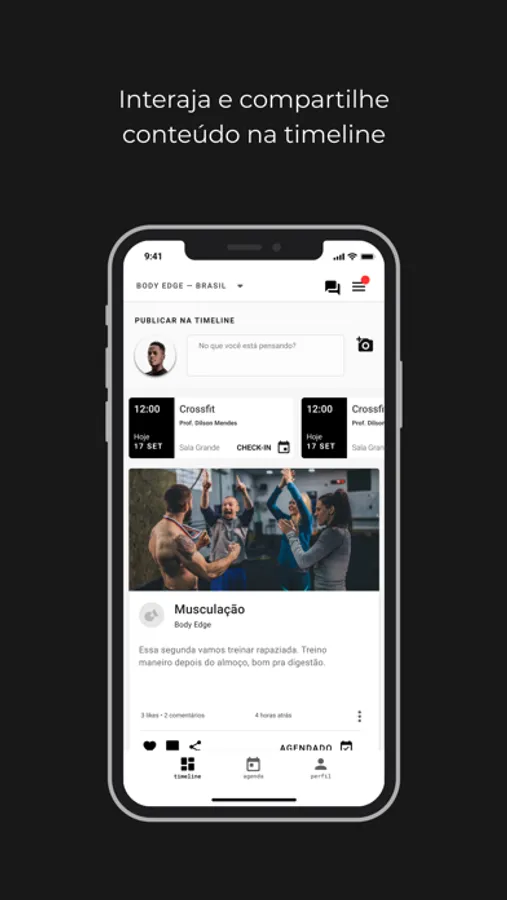 - Interaja com os professores e colegas, através da TIMELINE, postando fotos e mensagens.