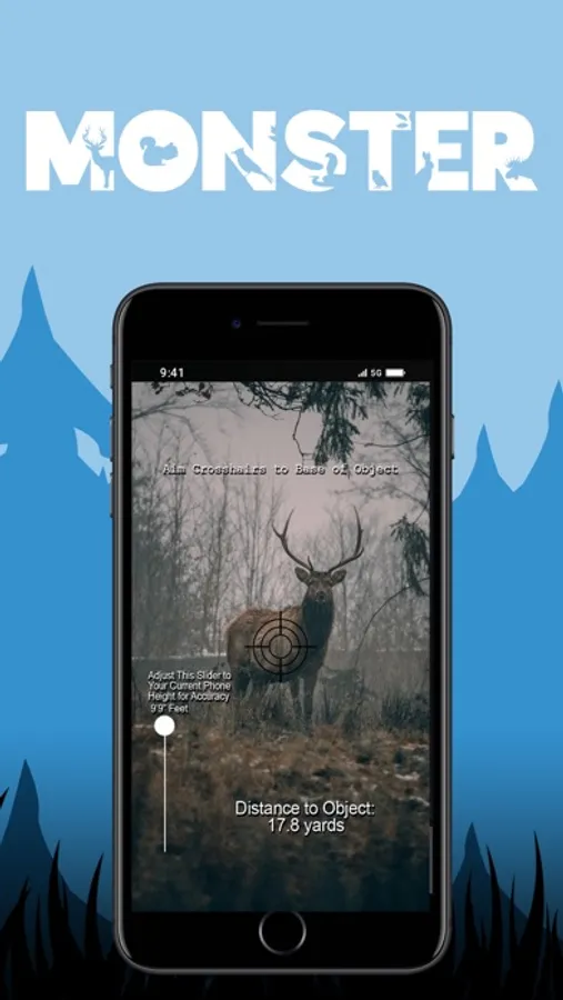 All you need to do is simply place the crosshairs at the bottom of the object you want to know the distance to and adjust the slider to how high you are currently off the ground. The app display the distance in yards.