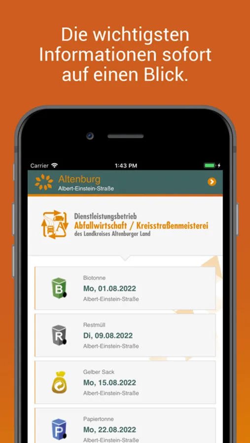 Die neue Abfall-App des Landkreises Altenburg. Bleiben Sie immer informiert - über Abfuhrtermine, Annahmestellen, Problemmüll und vieles mehr.