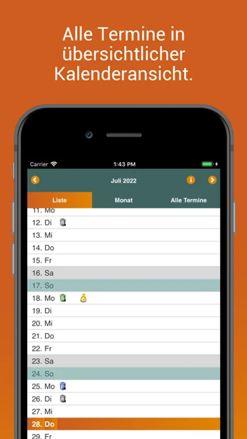 * Alle Termine in verschiedenen Kalenderansichten. Schafft Überblick in jeder Hinsicht!