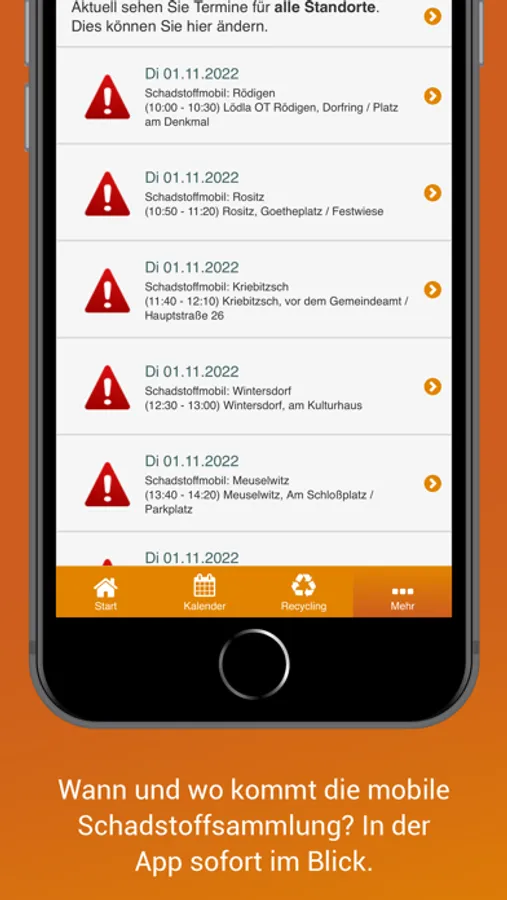 * Wann und wo kommt die mobile Schadstoffsammlung? In der App sofort im Blick.