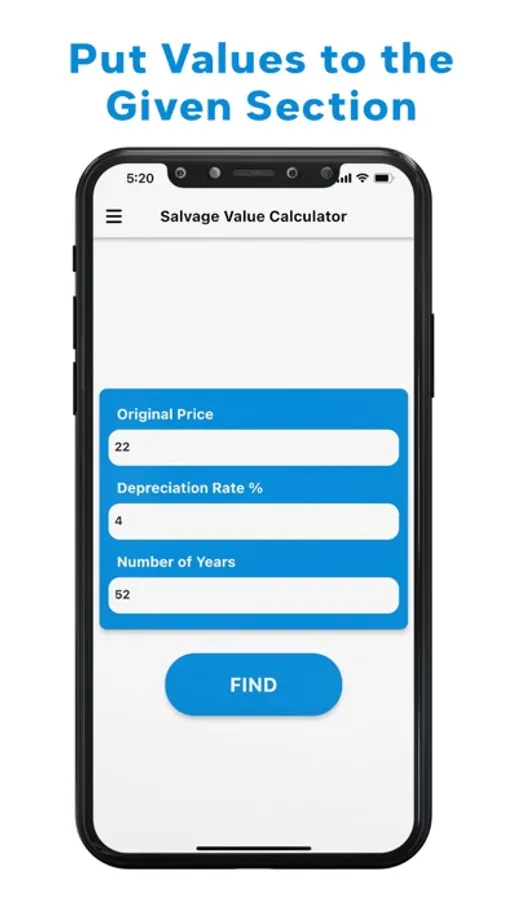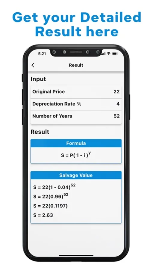Depreciation Value Calculator is a very easy and useful accounting app, which helps you to automatically calculate depreciation value of anything with detailed solution and formula of salvage value calculator.