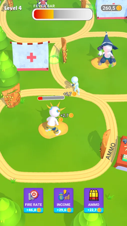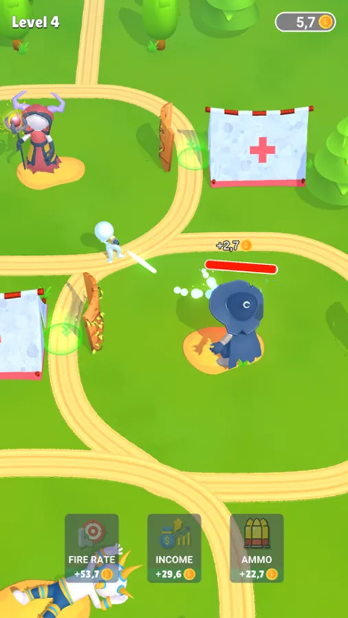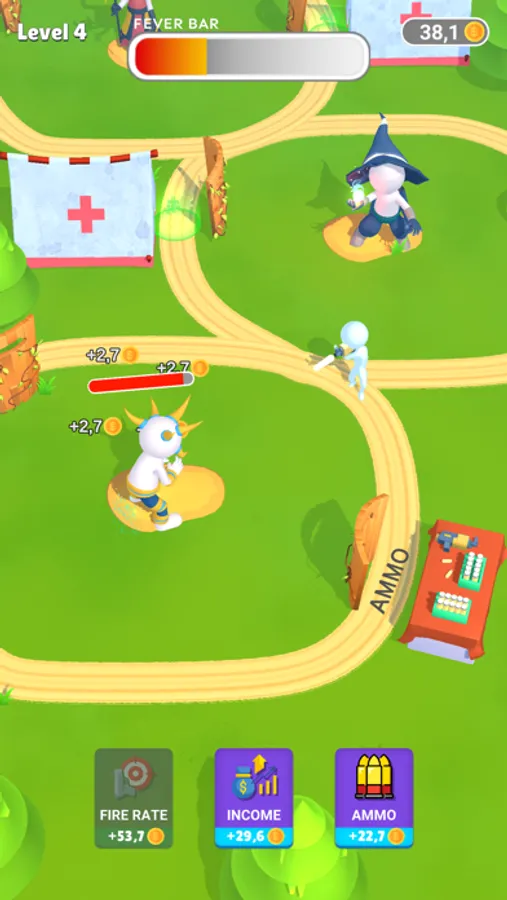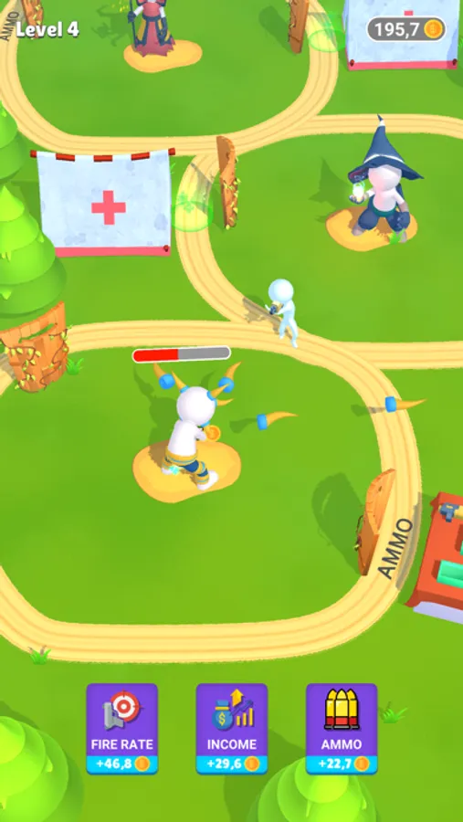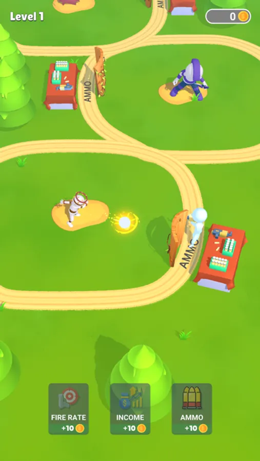 Tap&Hold to Run and dodge the attacks,Hold your position to attack,Use buttons to upgrade your power.