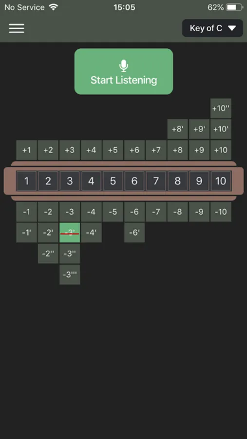 Tune Ai shows which harmonica holes you are playing, and how much you are bending.