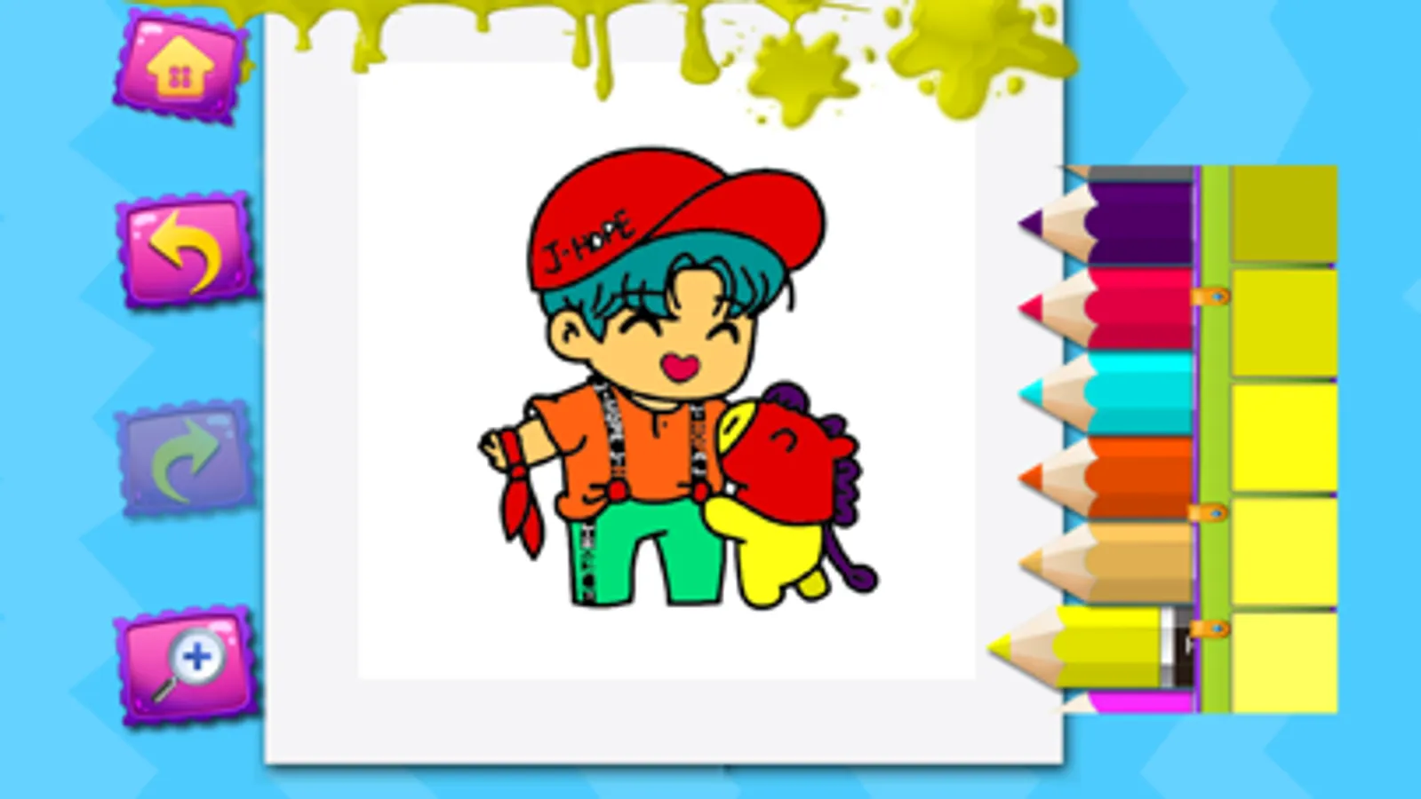 This anime coloring book BTS game application is suitable for boys and adults alike. You can save and share the results of the image that you have colored.