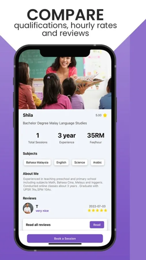 - At the tap of a button you can locate a reliable and vetted qualified tutor in your area, specializing in the subjects that you need assistance with. Compare tutors on the app according to their previous ratings, price and Skills.
