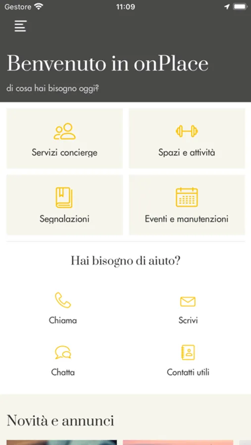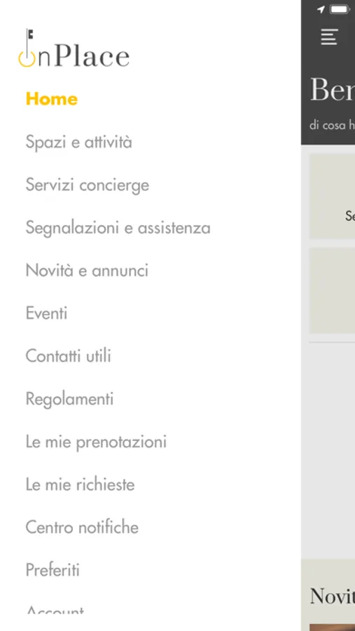 App per visualizzare servizi, attività e spazi presso onPlace di Santa Costanza a Roma, effettuare prenotazioni e contattare il Concierge.