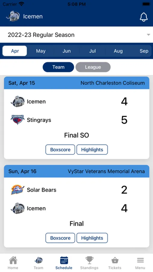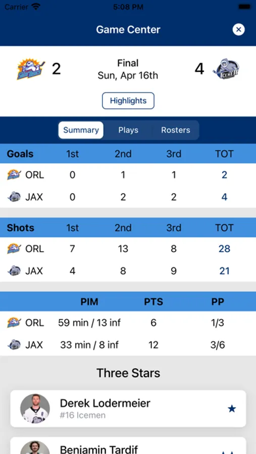 The official mobile app of the Jacksonville Icemen, featuring real-time scoring data direct from each arena. Follow every game in real time with complete box scores, game summary and up to the minute player stats. Watch games from within the app. The Icemen app also features past Scores, future Schedules, Standings and both player and goalie stats.