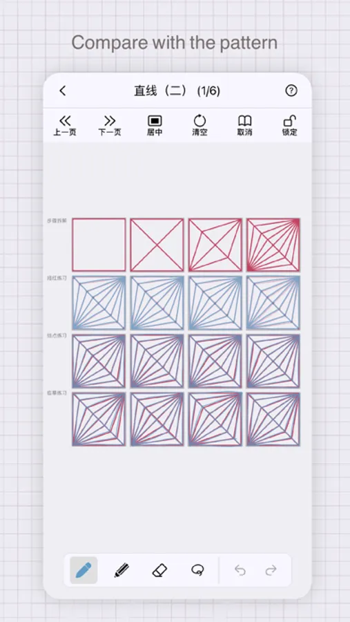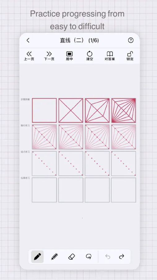 "Connect the Dots," and "Copy and draw" modes, ranging from easy to challenging, to master the line exercises.