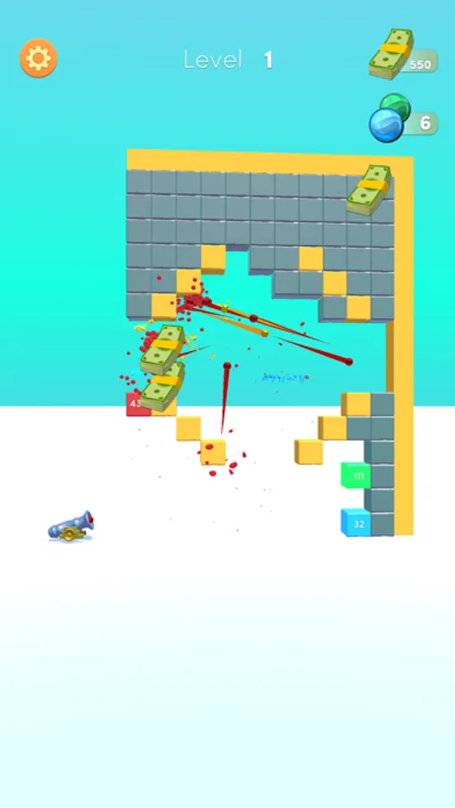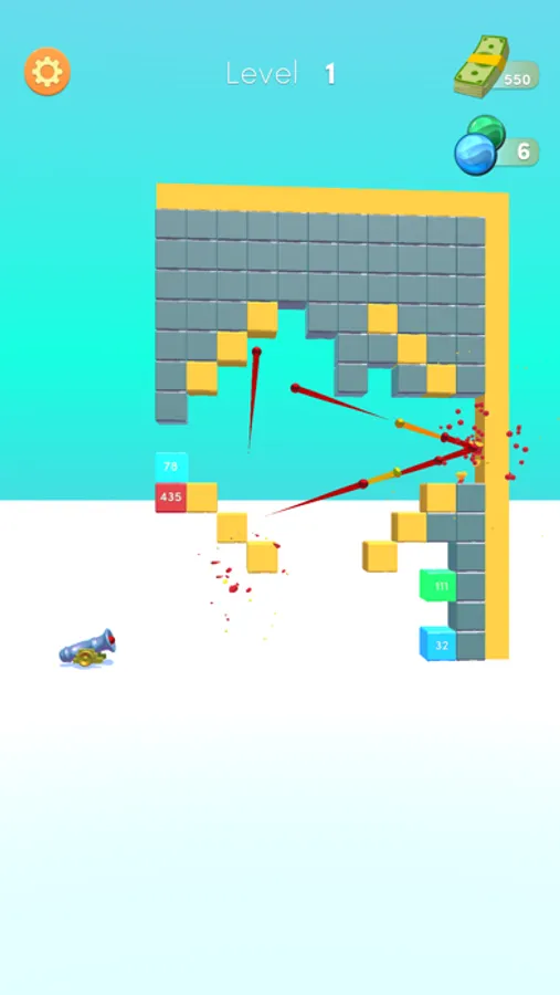 Bounce the balls by hitting the hex bricks and clear the arena with your cannon! Upgrade your cannon with the money you earn and clear faster!