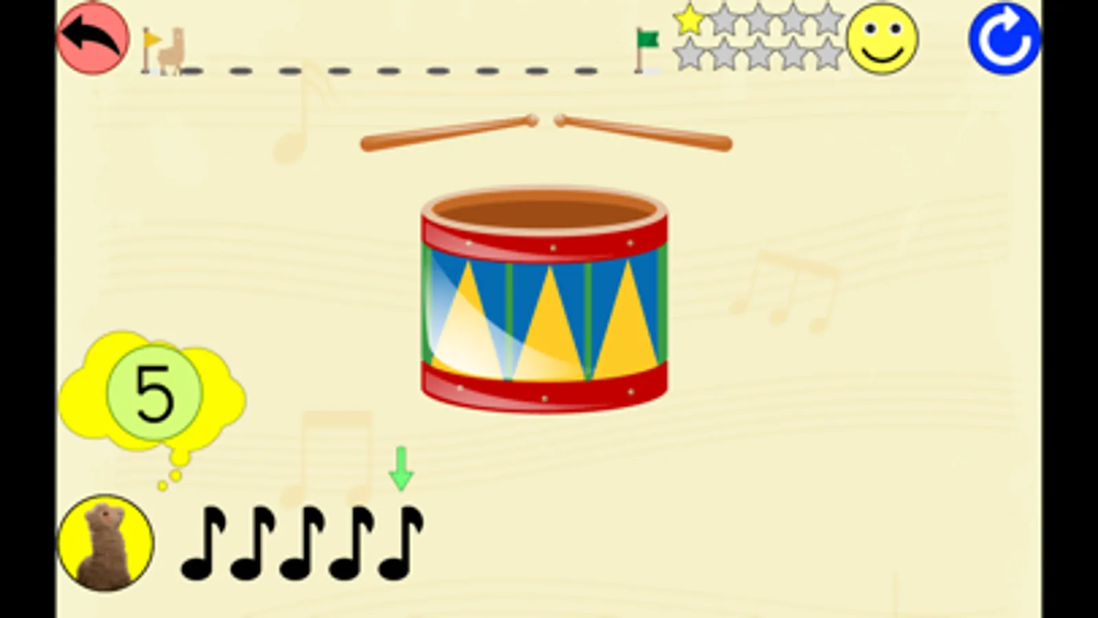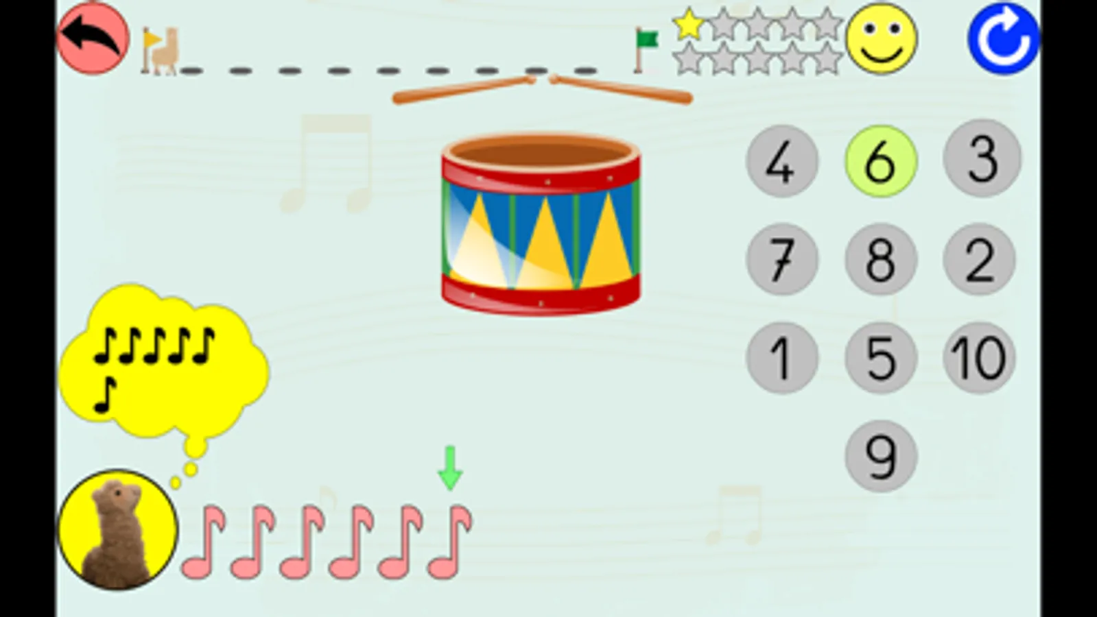 * tapez sur le tambour pour reproduire le nombre de coups entendus, puis validez sur la flèche verte.